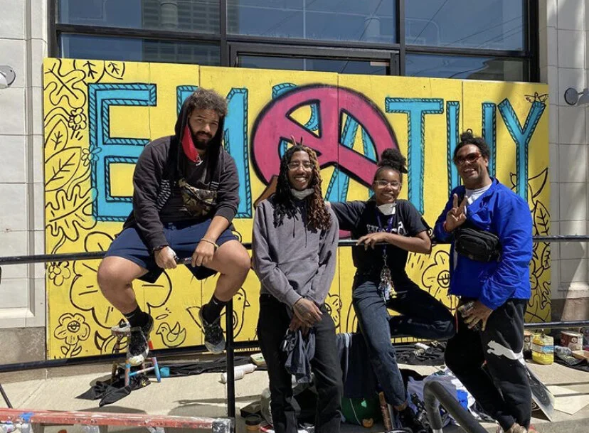 June 1, 2020 Empathy Mural on the plywood covering the windows of the new GCAC building.