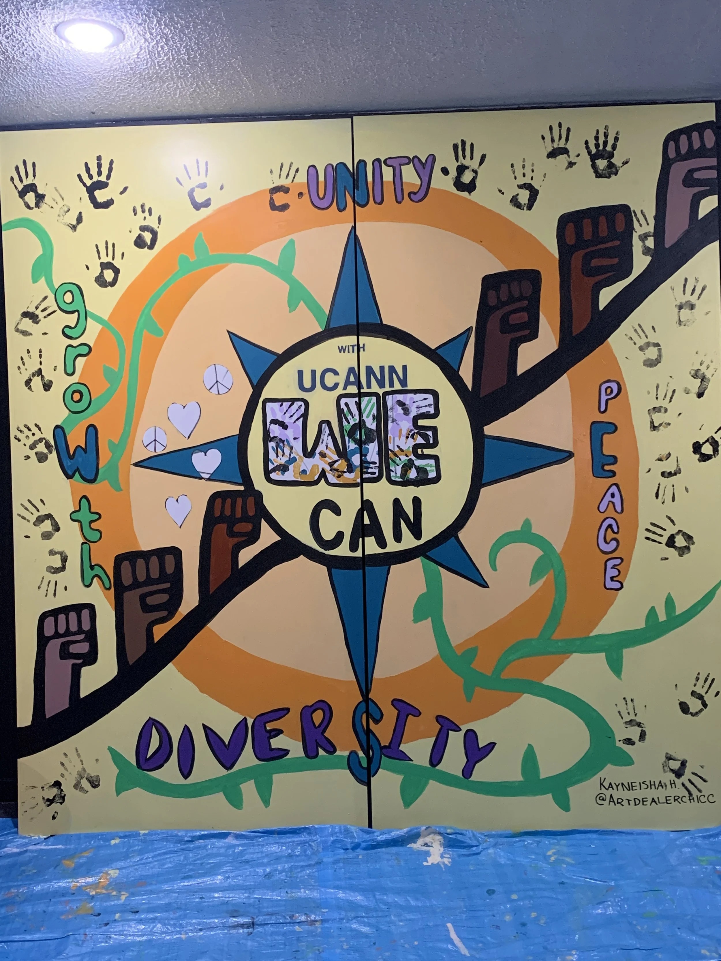 2021 UCANN Mural for UCANN by APDS (Afrocentric Personal Development Shop) led by Kayneisha Holloway in collab with UCANN teens and young adult participants.
