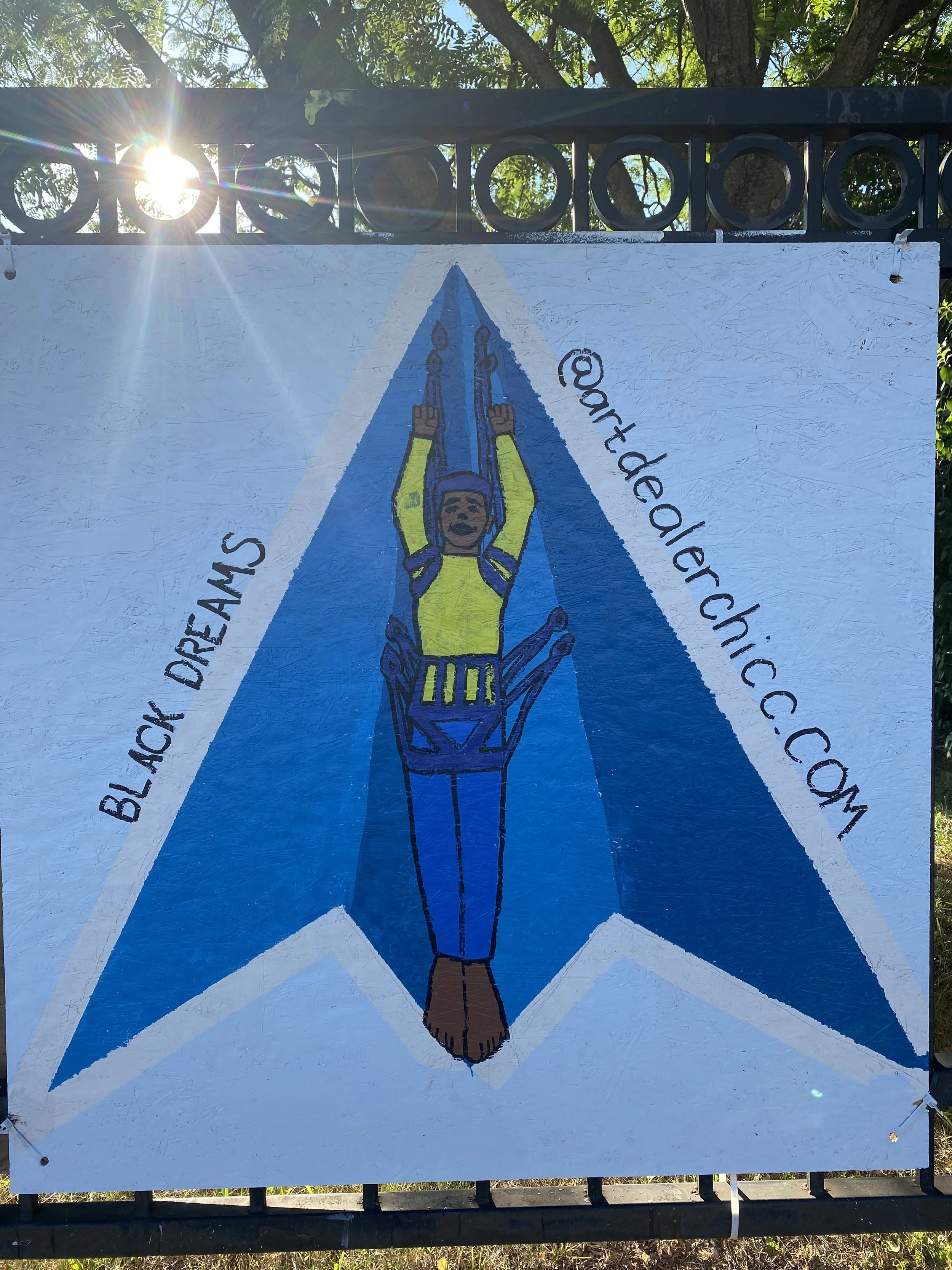 2021 Art On The Park, Deliver Black Dreams on 4’x4’ plywood at Maroon Arts Group